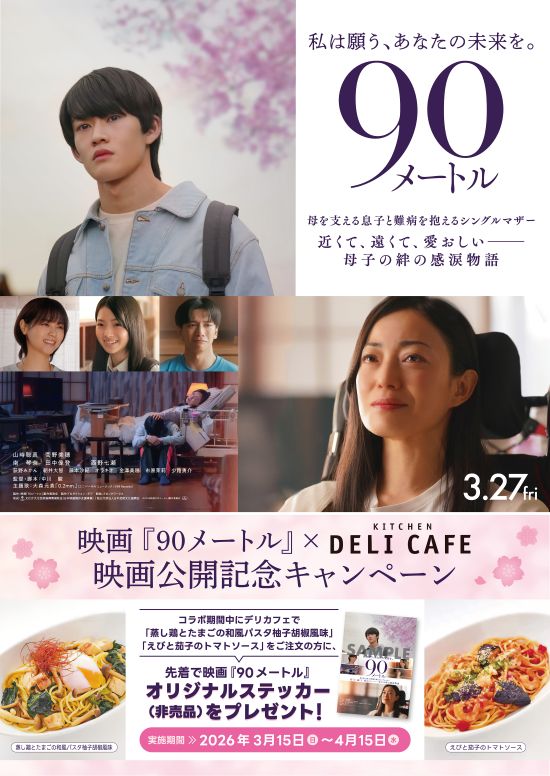 本作は、人生の岐路に立つ高校生の息子と難病を抱えながら我が子の希望ある明日を願うシングルマザーの揺るぎない愛を綴った感涙物語。そんな本作の公開を記念し、改札から約『90 メートル』ほどの近い距離で展開されている「デリカフェ」とのタイアップの実施が決定いたしました!